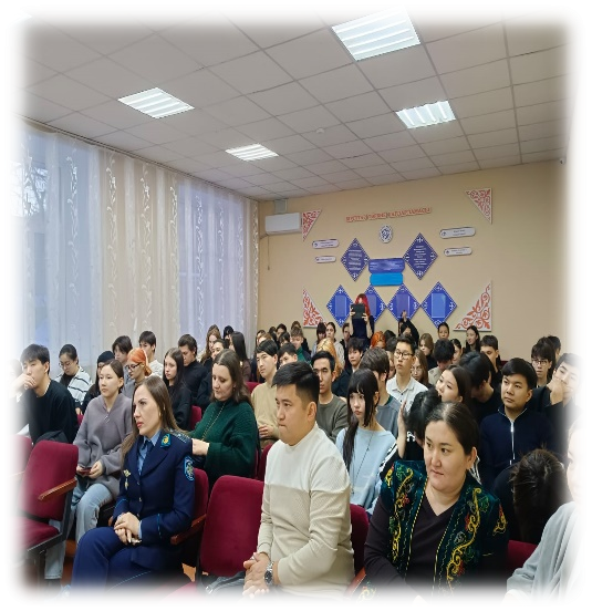 Канат Жайыкович настоятельно рекомендовал соблюдать правила поведения на улице, в общественных местах, местах массового отдыха и др. Он напомнил студентам о вреде употребления спиртных напитков и табака, а также объяснил, чем опасны эти пагубные привычки. Ребята с большим вниманием слушали спикера и получили ответы на все интересующие их вопросы.