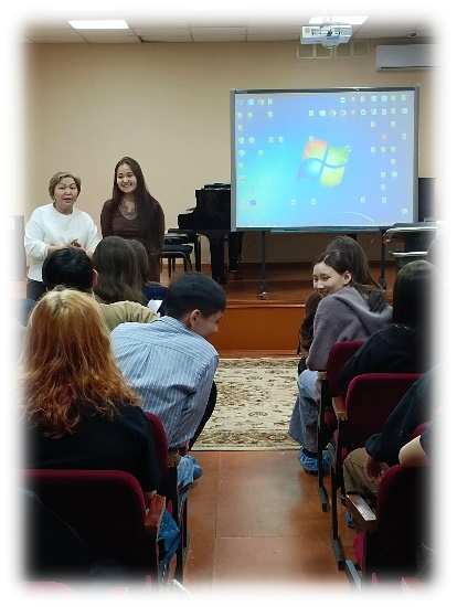 «Мы за ЗОЖ» - именно под таким названием сегодня прошла встреча с психологом Молодежного ресурсного центра города Петропавловска и студентами 1-2 курсов Комплекса «Колледж искусств – специализированная школа – интернат для одаренных в искусстве детей имени Ермека Серкебаева».