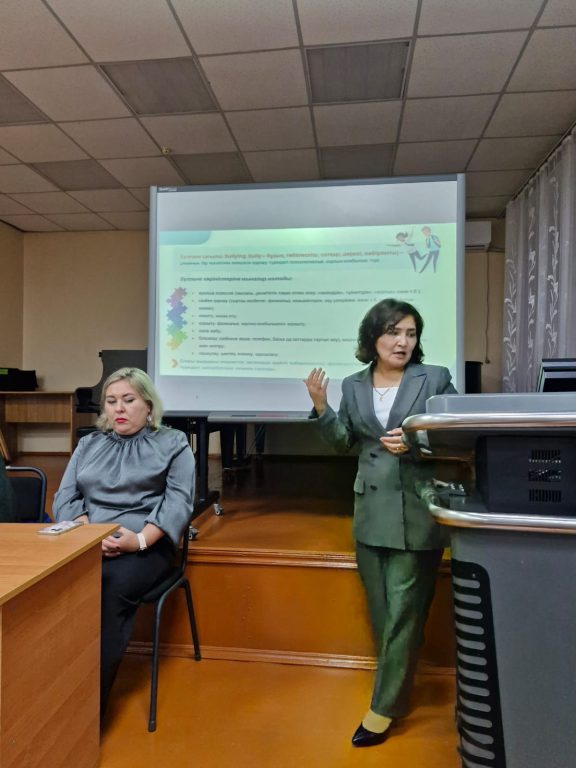 Жиналысқа «Өркен балалардың әл-ауқатын арттыру ғылыми-практикалық институты» аға оқытушысы Д.О. Муканова қатысып, ата-аналарға «ДосболLIKE» білім беру ұйымдарында білім алушыларды жәбірлеудің (буллингтің) алдын алу бағдарламасының 2025-2026 оқу жылынан жүзеге асыру маңыздылығы» тақырбында,буллинг түрлері, оны қақтығыстан ажырату және баланың буллингке ұшырауын қалай анықтауға болатыны туралы кең көлемде түсініктер берді.