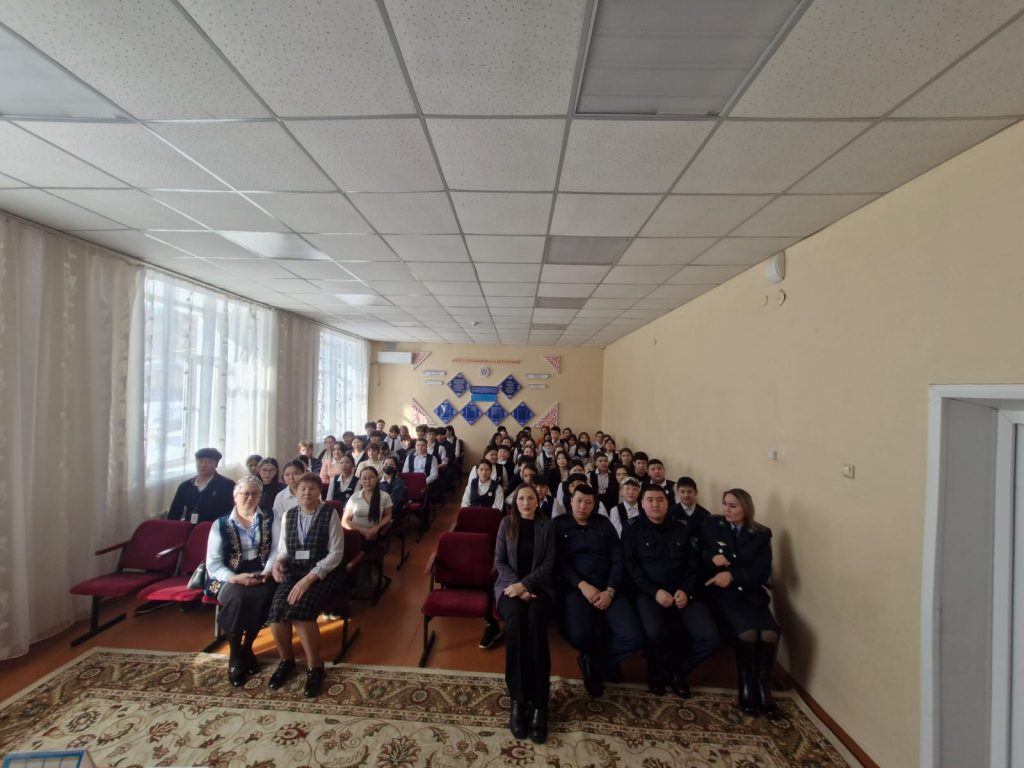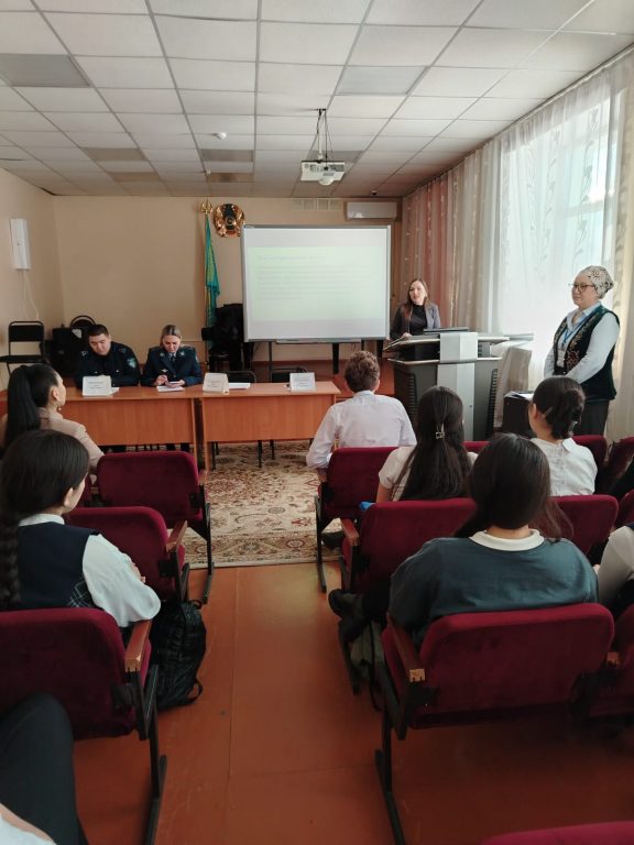 Кәмелетке толмағандар арасындағы құқық бұзушылықты алдын алу мақсатында 2022 жылғы 14 қыркүйекте кәмелетке толмағандар ісі жөніндегі аға инспектор полиция майоры Е.П. Леоненко, Умарова А.И. мен 8-9 сынып оқушыларымен кездесу ұйымдастырылып өткізілді.