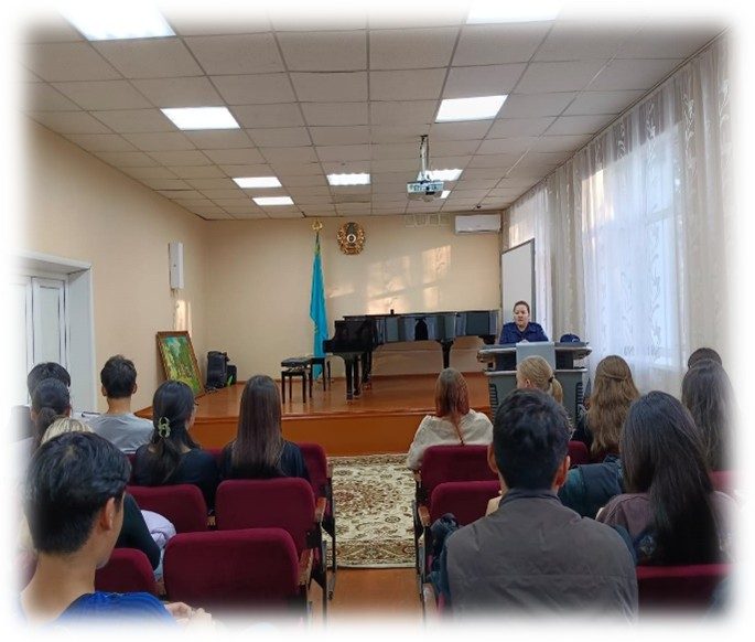 Информация о проведении лекции в КГУ Комплекс «Колледж искусств - специализированная школа-интернат для одаренных в искусстве детей имени Ермека Серкебаева»